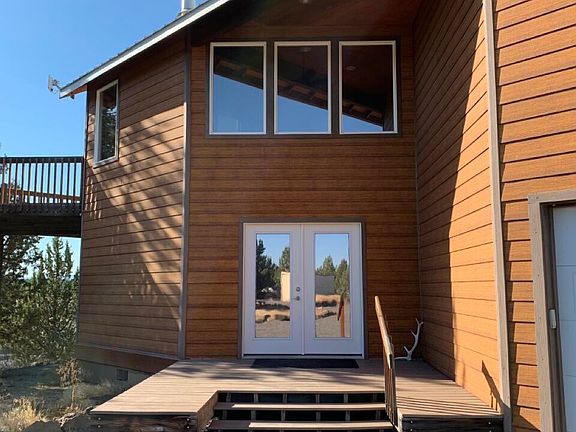 A custom built one owner home with an attached garage built on the rim located in Three Rivers Recreation Area.The home features a wood stove heated entry way with hallway to the primary bedroom, bathroom and laundry area. Upstairs you will be greeted by large picturesque tinted windows, to take in the fabulous views of Mt. Jefferson and Mt. Hood. An Open Concept floor plan where company could enjoy gathering from the deck to main room to kitchen. Upstairs two bedrooms and bathroom and an additional open loft which is great for guests or a bonus area. The kitchen has bar seating at the granite countertop, a Jenn Air down draft propane range, flooring is solid bamboo and tile throughout entire home complimented with knotty alder doors. The house is set back from the street so the homeowner will have more tranquility. Outside there is a fenced yard, storage, stellar solar system, backup generator for off grid living. Amenities include Airstrip, gun range, trails, lake, beach.