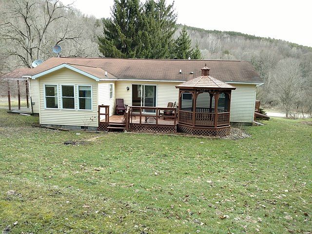 This home has been totally remodel, New Well, Pumped septic, and is on over 3 acres. It has a 1 car detached garage on a very private lot with tons of privacy. There is a large wooden deck with a screened gazebo, 2 small decks and a small patio as you come in from the garage. Nice blacktop driveway. This is part of a larger parcel and the taxes will be split when sold. County rate is 179.72, school is 546.90, and town is 238.35. Agent call call listing agent to assist in figuring the taxes on a smaller parcel.