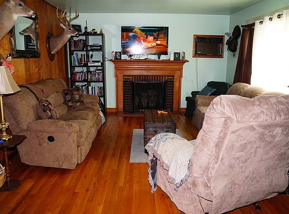 Nice brick home in a country setting. Home offers large rooms & hardwood floors in living room & bedrooms. Living Room has a fireplace. Kitchen cabinets have been recently painted. Other recent updates include new vinyl flooring in kitchen & bath and new hot water heater (2016). Basement has a wood stove for back-up heat. Large 2-Car Detached Garage. The large yard is adorned with many flowers, shrubs, & trees. Call today for a private showing.