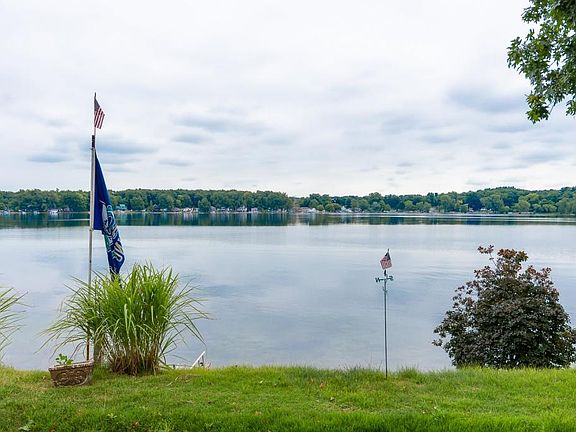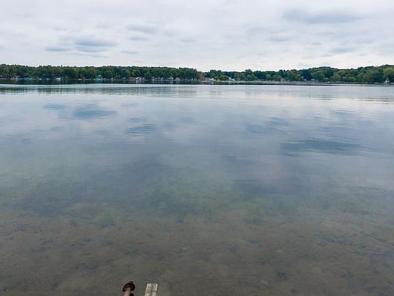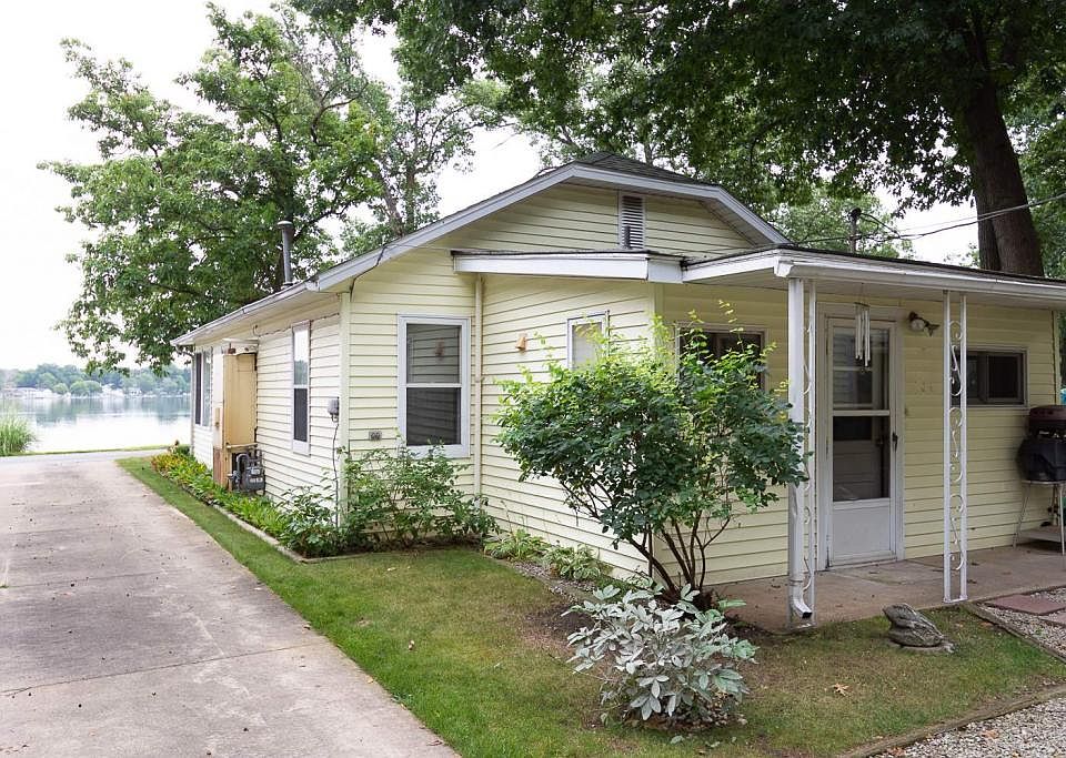 AFFORDABLE COTTAGE ON STONE LAKE WITH OVERSIZED 2-CAR GARAGE! 75 feet of lake frontage. *Bonus* The PONTOON & PIER ARE INCLUDED in the sale! This cozy cottage is listed as a 1 bedroom, but could be 2. Large sun room in front with beautiful lake views. Spacious yard (2 lots) with patio area and shed. The oversized 2 car garage has sink, toilet and work shop area. Main level laundry. Washer & dryer stay. With some TLC, this could be your dream lake cottage. There is so much potential here. Northridge School District. Call today before it's gone!