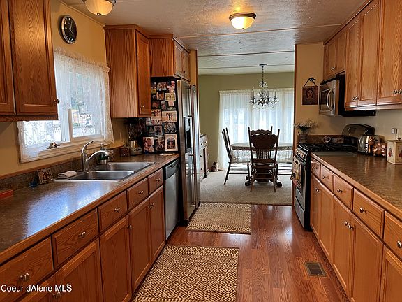 Covered, 10 x 20 deck, 6 x 20 loft in the double car garage, 10 x 10 garden shed, 10 x 20 storage shed and they all have power. Also has Lean-to for your ATV's, bicycles to ride the trail which is less than half mile away and mile from Silver Mountain. Beautifully landscaped, cherry trees, fenced, private back yard. Has well for irrigating and keeping it so well maintained.