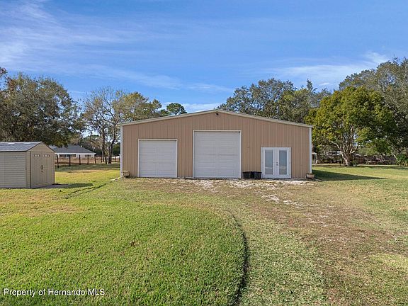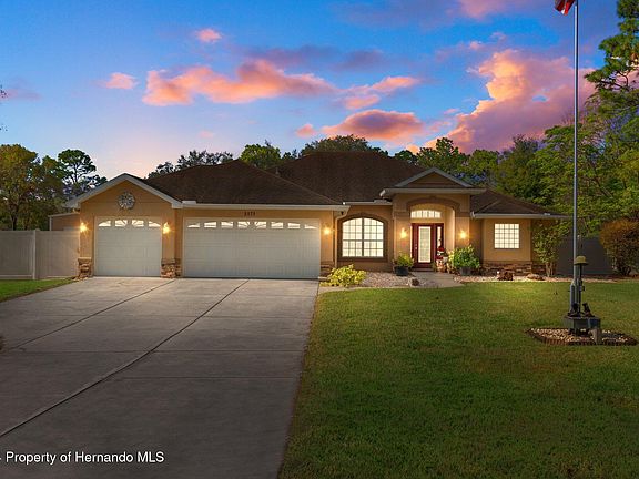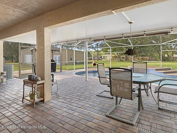 Welcome to the Florida lifestyle in your new home on fully fenced professionally landscaped & sodded, 1.25 acres centrally located in Hernando County where you will find an abundance of outdoor activities in our Adventure Coast. Oakwood Acres is minutes to open waters, fishing, hiking, biking-much more. Your new home offers simple elegant living, heated pool and spa, for year round enjoyment. If you're a car enthusiast or just need a well insulated/cooled shop w/ ½ bath, please take a look. This 4 bedroom, office, 3 car garage + home opens to large welcoming great room overlooking expanded pool and lanai with brick paver floors. Interior is all tile or wood laminate flooring, Kitchen showcases beautifully upgraded granite counters, wood cabinets w/ undercounter lighting, and recently updated gas range & all stainless appliances. Perfect for the discerning chef. Instant hot water & reverse osmosis dispensers. Newer microwave vents outside keeping odors out. Full house hot water recirculating system, making hot water at all faucets almost instant! All kitchen lights are LED along with Solatube skylight natural lighting. Large owners suite includes tile floors and a customized double closet with built in dresser units & LED lighting. Recently remodeled Bath showcases heated tile floors, soaking tub & separate walk in shower. Double vanities & upgraded lighting & extra storage. Office located outside owners suite easily doubles as a fitness center w/ views of the beautiful pool & backyard. 3 additional bedrooms and 2 additional baths/one doubles as pool bath. You're going to absolutely love the screened extra deep saltwater heated pool surrounded by pavers & waterfall. Includes above ground spa as well. Grilling station located just outside screened area. A 40x40 custom heated and cooled fully permitted workshop/man cave, insulated with spray foam, 100 am 120/240v panel, and 2 tone painted interior, is going to be amazing for your hobbies and extra workspace. 2 mini split A/C & heating units keep the building climate controlled. Interior office & 12x20 conditioned storage area w/LED lighting. Separate 40 gal water heater, slop sink, ½ bath pushes this workshop over the top! There's more...comes with 18x28 enclosed carport, 6x6 well shed protecting tanks & equipment and a Custom Chicken coop for the chicken enthusiast! Check out the automated coop which is full screened & even has wifi for live video. Surrounded by an awesome garden area & 10x20 garden shed. This property has everything you need to homestead live life to the fullest.1 horse is allowed per lot, too! Don't delay, as this one can close immediately and you can make it your home for 2025! Home is remediated sinkhole home fully insurable with all documentation. Ask your agent for complete list of all the amenities included. Ask your agent for complete list of all the amenities included.