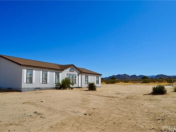 Looking for some beautiful desert land and a bit of privacy for you and your family? This is the home for you! A 4 bedroom 2bath home on over 3 acres is waiting for you to make it your home. It features an all around fenced yard, new exterior paint, new flooring throughout, new kitchen cabinets and countertops, large new tub in the master bathroom, and more! When you come through your front doors you enter the family room, to the left is the master suite and straight back is the dining room area which leads to the living room. The prominent master suite is located on the North side of the house by the family room. While the rest of the bedrooms are on the South side of the property after the living room. The spacious kitchen area opens up to the dining area with access to the sliding door for the backyard. Check out the gorgeous views in the photos! There's a detached two car garage for you to store your desert toys and plenty of property for you to enjoy them. Laundry room is located by the kitchen and has a door that leads to the backyard as well. This is a must see! Also a great opportunity for investors: current rental market value is $1300-$1350 month. Don't miss out! This manufactured home is on a permanent foundation and has a 433A. Located 30 minutes from the Marine Base, 7 minutes to Joshua Tree National Park, 45 minutes from the famous Palm Springs area, 5 minutes from downtown Joshua Tree, and 12 minutes from shopping centers in Yucca Valley. Check it out today!