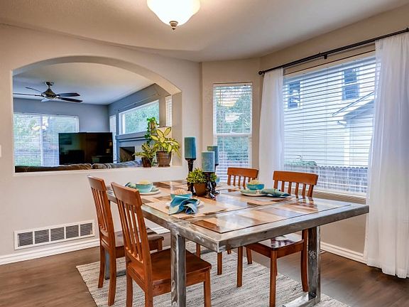 *Open House Saturday, Aug 12, 11-1* This delightful 2 story home features 3 bedrooms, 2.5 baths and a backyard retreat. Enjoy the mature Aspen trees & beautifully landscaped backyard. Large bay windows with lots of natural light throughout. The spacious sitting area & formal dining room are large enough to fit an 8ft table, perfect for large gatherings. A large arched opening between rooms creates an open concept layout. A cozy fireplace & a clearstory window in the great room. The kitchen has stainless steel appliances, maple cabinets, gas stove w/griddle, built-in pantry, kitchen island, & eating nook. A bonus loft area & 3 bedrooms, all with walk-in closets upstairs. The spacious master bedroom has an en-suite w/ dual vanities, soaking tub, separate shower & commode. Laundry is conveniently located near bedrooms. Updated gray ceramic tiles & dark laminate hardwood flooring throughout main level. A full-sized unfinished basement awaits your final touches.