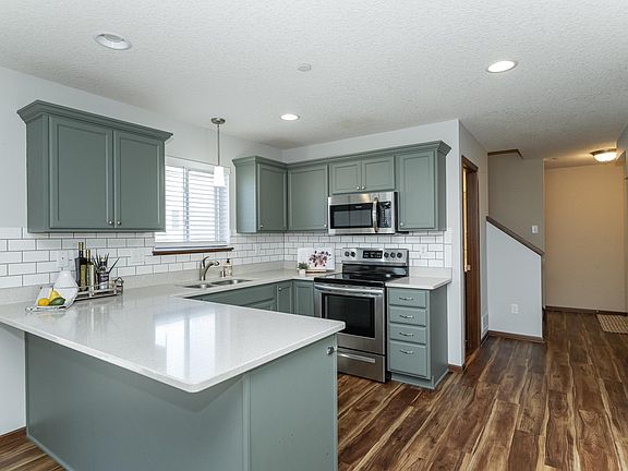 Fantastic newer unit in Foxfield Luxury Townhomes. And it's an end unit! Unique layout with 3 bedrooms on the upper along with laundry and walk through full bath. Primary bedroom has spacious walk-in closet. You'll love the kitchen with the painted cabinetry, stainless appliances, subway tile backsplash and LVP flooring! Hard to find finished lower level basement includes a spacious rec room, conforming bedroom with egress window, and a 3/4 bathroom with shower. Great for visiting guests! Updates include new roof and newer AC and water heater. This one is easy to love! On the bus route, near parks and 2 blocks from the Douglas Trail access point!