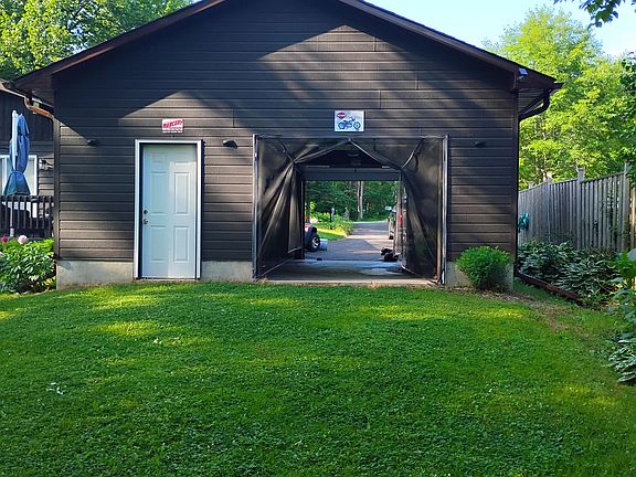 Welcome to your own private sanctuary on the river where peace, nature, and modern comfort come together in perfect harmony. Enjoy stunning riverfront views with protected EP land across the water, your own private boat dock, and peaceful surroundings perfect for year-round living or weekend escapes. This charming home features an open-concept layout with vaulted ceilings, large windows, and plenty of natural light. The kitchen and living areas flow seamlessly together, offering panoramic views of the water and surrounding greenery. South facing deck and dock provide all-day sunshine. Whether you're cozying up by the fire in winter or hosting summer gatherings on the deck, this home is designed to make every season enjoyable. Recent updates include roof shingles (2023), new eavestroughs, downspouts and a freshly painted exterior (2024).A long paved driveway offers ample parking for guests and family. Huge garage with workshop. Bonus features include a spacious heated bunkie -ideal for overnight visitors or a home office, high-speed internet, and ample storage. Relax on the large deck, fish off the dock, or boat/canoe/kayak down the quiet river. In addition to boating, this property offers year-round beauty and winter fun, perfect for creating your very own large skating rink right on the frozen river! This location strikes the perfect balance: immersed in nature, yet only minutes to Washago, where you'll find grocery stores, cafes, a hardware store, LCBO, and more. Don't miss this rare opportunity to own a peaceful waterfront escape with modern comforts! Easy access to Hwy 11.