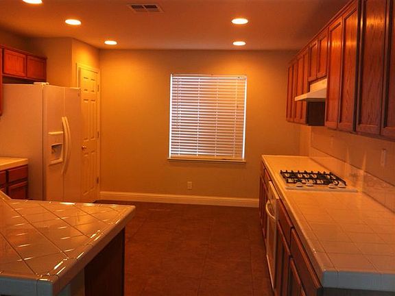 Great Home in excellent condition and move in ready. 3 bed/2 bath with large great room and open kitchen. Tile in entry, kitchen, great room and hallway. Bedrooms are carpeted. Front and back yard are full landscaped. Back yard has nice large stamped concrete patio and walkways to front of fence. Refrigerator is NOT included in sale. Bring your buyer and put on offer on the home.