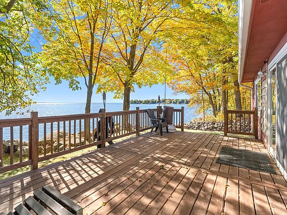 Welcome to your fully furnished lake house on just short of an acre. This charming property features 3 bedrooms and 2 bathrooms with plenty of lake-facing windows that flood the home with natural light and just a stone's throw from the lake. Enjoy the spacious deck(12x22)perfect for relaxing or entertaining with stunning waterfront views and beautiful sunsets. A "New" private dock and boat lift are included, making water activities easily accessible. For storage, there's a 24x26 2 car garage and a 30x32 pole barn, ideal for housing all your outdoor gear and toys. Whether you're seeking peaceful solitude or adventurous water fun, this lake house promises a blend of comfort, convenience, relaxation and endless waterfront enjoyment. The home as been updated with a new hot water boiler with on demand hot water, 2 new mini splits for backup heat and A/C. Property has been split.
