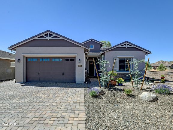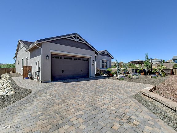 2021 Home in the heart of the Dells. This home is full of upgrades. Full porcelain tile flooring throughout entire home, soft close paintable upgraded cabinets, Bumped out owners suite, bumped out front bedroom, extended patio cover, Kichler lighting, most lighting with dimmer switches upgraded Kolher toilets. Dual 10ft patio sliders. Stainless steel gas appliances. Upgraded granite in kitchen. 3rd bathroom added. 3 bay garage. Concrete tile roof, ceiling fans with lighting throughout the home. This property has resort style landscaping for outdoor living 1400 ft of pavers, gas fire pit with brass cross jet burners, Water feature with stream and pond, gate on view fence. Irrigation system on timer and resort outdoor lighting. This is one of a kind property in the Prescott Dells.