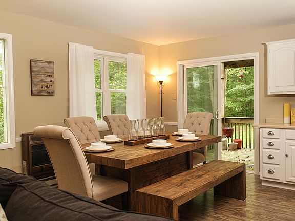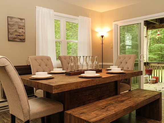 This 3BR/3BA River View home is located in the lovely community of Riverside Estates. It is a nature lover's paradise and sits on 2.25 wooded acres. Welcome home. Relax, play, and enjoy the majesty of the Pocono Mountains.This home is fully furnished in an uncluttered modern style and has high ceilings, expansive natural lighting, and an open-concept floor plan. The spacious master features an en-suite bathroom and large walk-in closet. The huge island, new appliances and great open kitchen includes custom-made hardwood cabinets and extended counters that are perfect for entertaining.This completely renovated home is move-in ready with all appliances, furniture, and an additional wooded lot included.This lovely home is in a highly desirable area. Book your showing today!