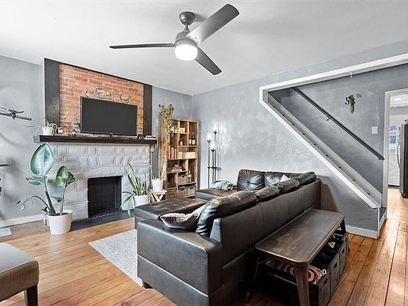 Upper Lawrenceville brick home with 3 bedrooms and 2 full bathrooms. Situated just steps away from Butler St with numerous restaurants and retail. Loads of charm with original hardwood floors, decorative fireplace, and exposed brick! The kitchen has been updated with refinished cabinets, stainless steel appliances, wood countertops, subway tile backsplash, deep basin sink, lighting, breakfast bar with shelving and included kitchen island. The second floor offers a spacious master bedroom with double closets, updated bathroom, and guest bedroom/den. The top floor is a large finished room that can be a 3rd bedroom, artist studio or home office. An additional full bathroom was just added to the basement where the laundry is located and plenty of area for storage. New furnace and AC installed just four years ago along with newer windows, ceiling fans, dimmers, and the front of the home has been completely repointed. Out back is a 17x6 cement patio that's perfect for entertaining.
