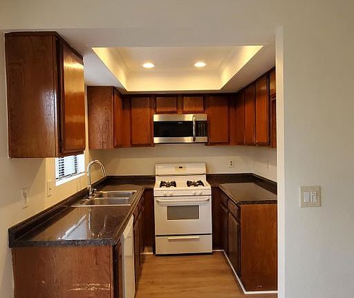 Nice town-home style available now. Brand, laminate flooring, new carpet, brand new paint. Upgraded kitchen and bathrooms. Master bedroom with built in desk area. Master also has a slider with balcony. Large wardrobe closets. Small fenced yard in back. Approx 1,000 square ft. Only a few small steps to laundry facilities. A private 1 car garage is included. To apply for this home go to LionProperties. Rental Terms: Rent: $2,300, Application Fee: $55, Security Deposit: $2,300, Available Now Contact us to schedule a showing.