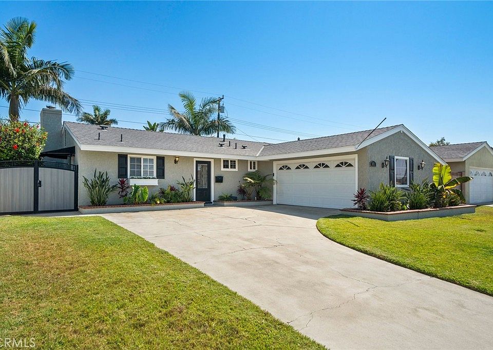 Cypress – Brentwood Gardens: This attractively updated pool home offers 3 bedrooms and 2 baths – both baths include showers. The floor plan includes 1,050 square feet of living space on a larger size 6,500 square foot lot. The location on a quiet interior street in the heart of the highly rated Cypress school district is excellent. Key updates to the home include a new roof, and new heating and air conditioning systems in 2019. The beautiful kitchen offers stainless steel appliances, upgraded cabinetry, a peninsula with a breakfast bar, and granite countertop The spacious living room includes the addition of a wood-burning fireplace, crown molding, recessed lighting, and a large sliding glass door providing access to the backyard. The primary suite features dual closets and an en-suite remodeled bath with modern style vanity and shower including a glass door. The main bath has also recently been remodeled. Additional interior features include dual pane vinyl-framed windows and sliding glass door, raised panel interior doors, and fresh new interior paint. The front and back yards are attractively landscaped. The private backyard offer a covered patio with Jacuzzi Spa for outdoor dining and entertaining, a lawn area for kids and pets to enjoy, and a beautiful pool with a safety fence. This home also includes a 2-car garage and spacious private driveway for extra parking convenience. Fabulous quite interior street location, and central to the highly rated Cypress schools, including Morris Elementary, Oxford Academy, Lexington Jr. High, Cypress High, and close to Cypress College. This is an ideal location with the convenience of easy access to freeways north and south, with no freeway noise or pollution.