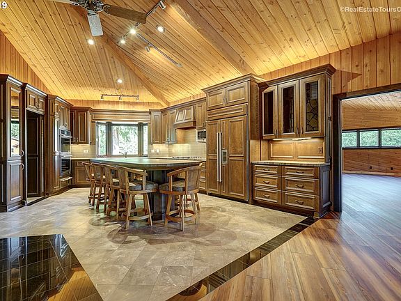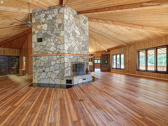 BEAUTIFUL COUNTRY LODGE HOME PERFECT FOR ENTERTAINING GUESTS IN GRAND STYLE! Surrounded by lush forest and trails. Every detail was carefully selected and quality crafted in this unique custom home with a lodge feel which features a huge wrap around deck, renovated kitchen & bathrooms (heated flooring). Several outbuildings including Gazebo, Pavilion, 3 large heated shops. Wine Cellar and unique bar. Custom fireplace with wood elevator.