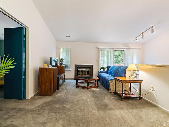 Open & bright penthouse condo located in the most desirable Whispering Woods community. This home boasts vaulted ceilings, a cozy living room with a wood-burning fireplace, & an eat-in kitchen with a separate dining area. The spacious master bedroom has a walk-in closet with its own private bath. The 2nd good-sized bedroom has 2 large closets & shares the main bath. A sliding glass door from the dining area leads to the balcony with views of the peaceful woods. New roof (2022), Siding (2022) and Furnace (2023). The association has a clubhouse with a fitness center, sauna & event room, an outdoor swimming pool, 2 tennis courts & 2 playgrounds. Easy access to major highways, shopping, dining & recreation. Close to hospitals. South Brunswick Award-Winning Schools!