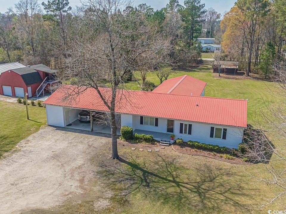 Welcome to this gorgeous 3 bedroom 3.5 bath country style ranch home on two beautifully landscaped acres! It has a metal roof with a two bay carport with a bonus outside room with its own half bath that can be used as an office or man cave. The two story, two car garage barn/workshop with a second floor has a beautiful patio that was installed in 2022. Home originally built in 1983 with the new addition added in 2008. The back of this huge lot has plenty of room for RV and boat parking with another entrance to the property from Murray Johnson Rd. There is also an additional detached one car garage.  Split bedroom floor plan with each bedroom having its own bathroom allowing a great deal of privacy. One of the bathrooms was remodeled in 2022. The huge master bedroom has a walk in closet and beautiful walk in stone shower that can be enjoyed with the highly efficient tankless water heater. Beautiful hardwood floors in living room, kitchen and common areas. Kitchen has custom hardwood cabinets and stainless steal appliances with gorgeous stone counter tops. This house has a country feel with all the conveniences of town. Heat pump, city water and sewage. Located in the Aynor school district, 35 minutes to the beach and five minutes to HWY 22. Don't let this rare opportunity to own this property pass you by.