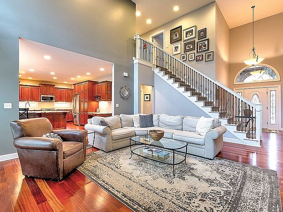 18 foot ceilings, sleek lines, fresh updates, and quality construction describe this pristine residence in Northlake Woods in Tipton Lakes. Built by Kevin Thompson, the home offers five bedrooms & four bathrooms. The 2 story foyer and great room are integral to the kitchen area, creating an expansive living and entertainment space. Granite counters, cherry cabinets, stainless appliances, glass subway tile, and hardwood floors finish out the kitchen. The sprawling master suite is on the main level with 12 foot ceilings, private access to the rear patio, a spa-like tile bathroom, and large walk-in closet. There are three bedrooms upstairs and a full suite in the basement. Basement offers plenty of storage, as well as a huge 39 x 15 carpeted flex room. Exterior amenities include a 3 car garage, lawn irrigation system, and rear patio!