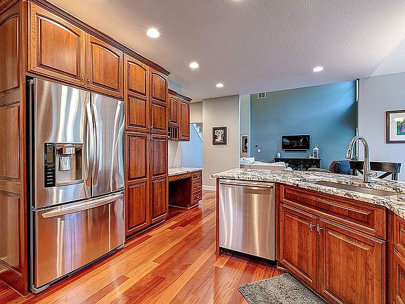- Ceiling Fan(s), Breakfast Bar, Kitchen Island, Walk-In Closet(s), Great Room, Stone Counters, Eat-in Kitchen, Formal Dining Room, Entrance Foyer, Tray Ceiling(s), Open Floorplan, Tub/Shower Combination, 1st Bdrm En Suite, Ceiling-9+, Main Level Bedroom Suite, Stand Up Shower, Tub and Separate Shower, Jet Tub, Twin Sink Vanity, Custom Cabinetry, Built-in Desk