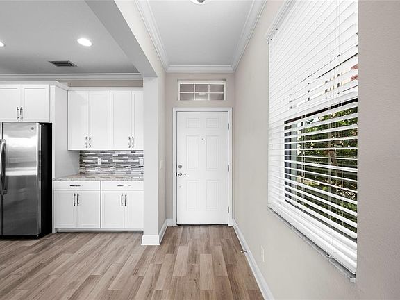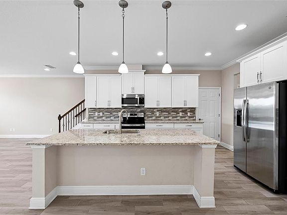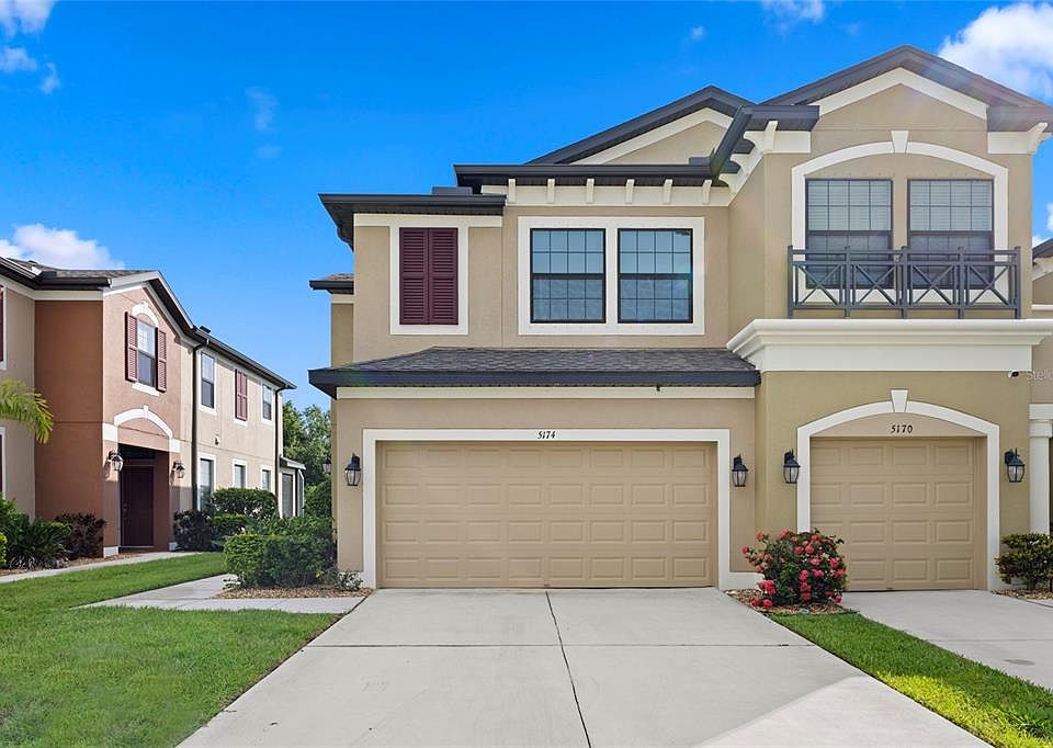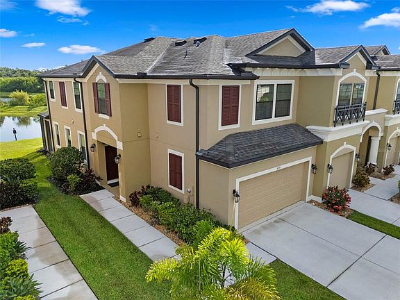 Under contract-accepting backup offers. Welcome to Creekwood, the epitome of luxury living! This stunning townhome offers an impressive 2,181 square feet of beautifully designed space, complete with a breathtaking pond view and a convenient two-car garage. Step inside through the inviting side entrance and be greeted by a spacious foyer that sets the tone for the rest of the home. To your right, you'll find a chef's dream kitchen, featuring a generous island, ample counter space, and abundant cabinet storage. Just off the kitchen, you'll discover a well-appointed laundry room, a stylish half bath, and easy access to the garage, making everyday living a breeze. Beyond the kitchen, the dining area beckons to your left, while the expansive family room to the right is flooded with natural light, creating a warm and welcoming atmosphere. Slide open the glass doors from the dining room to reveal your own private extended lanai, perfect for savoring tranquil views and entertaining guests. A staircase located in the front right of the family room leads you to a fabulous bonus area upstairs. To the left, you'll find two spacious bedrooms, each boasting large walk-in closets, accompanied by a full bath conveniently located between them. On the right side of the bonus area lies your luxurious master suite—a true retreat. This stunning primary suite features an exceptionally large walk-in closet, and an elegant master bath designed for relaxation. With double sinks, a linen closet, and a spacious walk-in tiled shower, this master bath is the perfect sanctuary to unwind. Don't miss the opportunity to make this dream townhome your own—luxury and comfort await you at Creekwood!