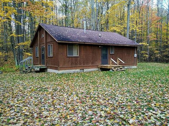 20 Beautiful wooded rolling acres comes with this 3 bedroom ranch. Nice secluded setting off a well kept easement that accesses many properties. If you are looking for a quiet get away with wildlife all around, this may be the place for you. Cathedral ceilings in the open floor plan for the living room/kitchen/dining room. Nice bathroom with a shower and a separate laundry room. Home comes furnished so you can start enjoying it the day of closing. Includes stackable washer/dryer, stove and fridge too. The drive in is beautiful with the colors all around. Gate at the entrance if needed. Call today!