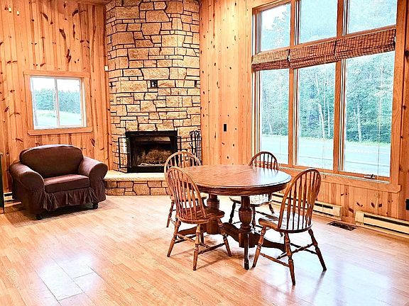 Year-round home/cabin nestled on a 1-acre lot BOARDERS 100's of ACRES of FOREST COUNTY LAND. Escape to tranquility with this enchanting cabin, where rustic charm meets modern comfort. This old school house is nestled in a picturesque setting, this cozy retreat features a maintenance free exterior, floor to ceiling stone wood burning fireplace, beautifully architecturally crafted rustic wood interior with vaulted ceilings offering a warm and inviting ambiance perfect for relaxation and adventure. Large transit windows provide additional natural light! Full basement with wood burning stove hot water heater. Finish LL by adding an egress window to add a bedroom or more living space. Perfect for the outdoors enthusiast who wants to use ATV’s,/Snow Mobiling/Hunting/Fishing or someone simply looking for a private quiet oasis retreat to sit around a campfire with smores and enjoy the beautiful evening stars. Located by some of the nicest lakes in WI and trails that go on for miles. Call for a showing today.