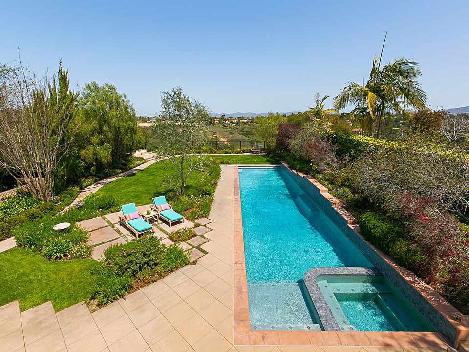 Gorgeous home on a spectacular 12,832 square foot lot with stunning canyon views in the coveted neighborhood of Carmel Country Highlands! Enter the front door and see the amazing view, the elegant lap pool, fire pit, expansive lawn and patio - perfect for entertaining. Travertine and hardwood flooring, plantation shutters and custom paint throughout. First floor highlights bedroom & en-suite bath, open floor plan, high ceilings and spacious kitchen with stainless appliances and granite counters.
