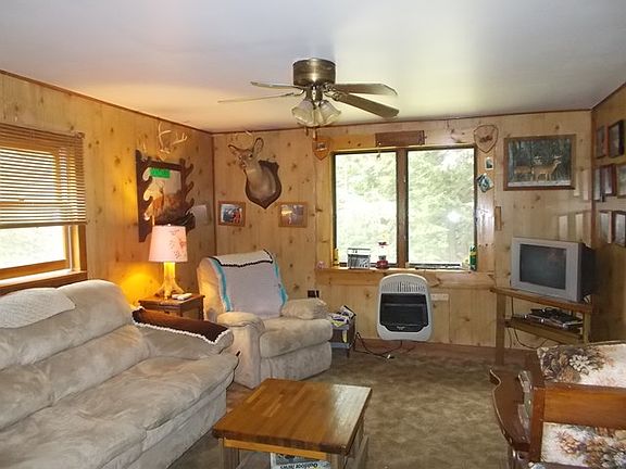 This cabin is situated just below Denton Hill in Potter County!! Great seasonal retreat, close to snowmobile trails & State Game lands, Cherry Springs State Park. Cabin has 2 bedrooms, 3/4 bath, living room, kitchen. Covered front porch. Also, comes with a 1988 Prowler Camper 29 feet for your extra guests. Shed 12 x 16.