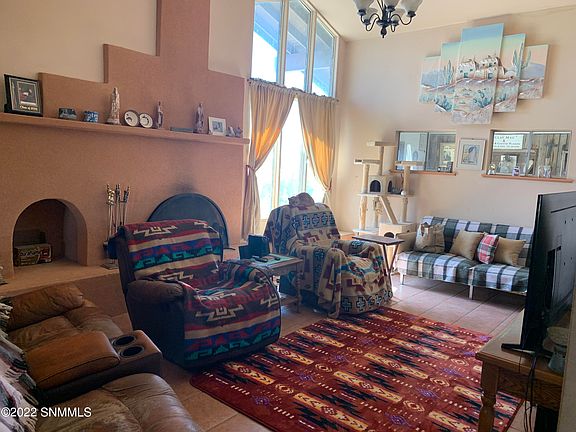 Set in the Deming countryside with an amazing view of the Florida Mountains, sits a charming 3 bed 2 bath home on 1.5 acres. This spacious home has 1846 sq. ft. of living space a two-car garage and large yard with endless possibilities. The kitchen is well equipped with an electric range, refrigerator, dishwasher, island and plenty of storage. Just off the kitchen is an eat in area with room for a large dining table and a door that leads outside. The primary bedroom features an ensuite and walk in closet. Additionally, there is a large flex room/laundry area that can be accessed from the primary bedroom or foyer, and can be utilized as a hobby room, extra living area or various other uses. The home also has a well. This home is priced to sell and must be seen to appreciate all it has to offer.