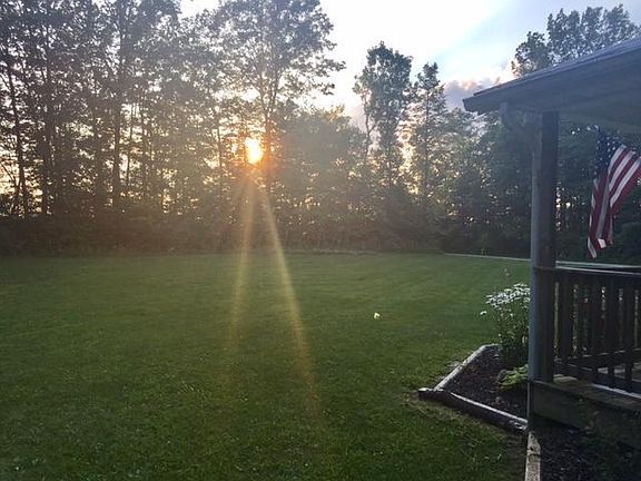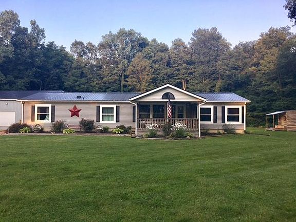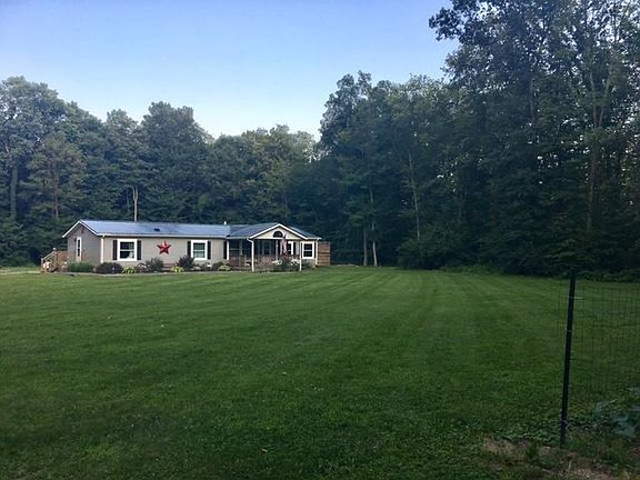 Privacy, Privacy, and more Privacy!! This 1,716 Sq. Ft. ranch is nestled on 2 acres and completely surrounded by woods. Home was completely updated in 2012; New standing seam roof and gutters, all new windows and sliding glass door, all new flooring and new appliances. New 36' x 42' pole barn built in 2014 has 2 8' x 8' overhead doors and one 12' door. Pole barn has steps leading to storage loft and new gutters with gutter guards. Above ground pool to convey. Steps and entrance deck to pool new this year. Cute shed can be used for storage or it's current function of play house. 17 course basement/cellar under master suite section of house with cellar door entrance. Great for storage, safety, and possibly secret man cave! Remainder of house on a crawl space.