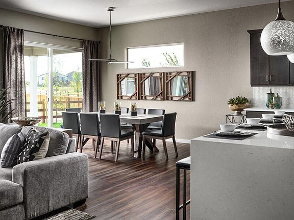 PHOTOS OF AN OVATION 1 MODEL HOME Beautiful ranch home w/2,993finished sq ft, including finished basement, 3 bedrooms/3 bathrooms, 2-car side entry garage, extended covered deck, extended patio area, spacious step-in Master shower, comfort height vanity w/double undermount sinks & vanity area. Open concept w/spacious entertaining Kitchen island + 42" cabinets in "White Icing", Quartz countertops in both kitchen & bathrooms, extended solid surface flooring, upgraded carpet, lighting fixtures, A/C, Gas fireplace & more! South-Facing Driveway, Walk-out Basement, Backs to Open Space! Monthly fee covers weekly front yard lawn care in the summer and snow removal on the driveway and sidewalks in the winter. Community amenities include a 7,000 square foot rec center, outdoor pool, 12 acre park, and 90 acre lake with a 2.8 mile trail around it. Taxes are on unimproved property for 2020. Please confirm tax rates with the Weld County Tax Assessors Office.