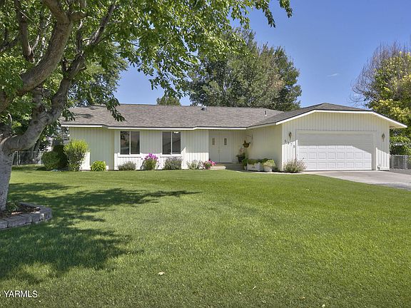 Relaxed setting in southwest Yakima, this beautiful home rests upon a full acre sized lot which is completely landscaped and maintained for your enjoyment. The 1,640 square foot interior features newer vinyl plank flooring to go along with updated can lighting and a formal dining area. The home features three bedrooms including the primary suite with double closets, vaulted ceilings, and its own 3/4 bathroom. The living room is complete with excellent natural light and a cozy gas fireplace. Step outside and take a stroll around the property where you will observe a covered deck area and pergola along with multiple outbuildings including a 36x40 shop with sunroom, green house, gardening shed, and a small carpentry shed. Additional features include vinyl windows, Lennox HVAC system with Central A/C and heat pump, kitchen pantry, hot tub, newer appliances and water heater within past 2 years, sprinkler system, fenced backyard, gardening areas, a new well pump in 2010, water softener, insulated floors, monitored security system, RV parking, and one-bay attached garage with additional storage!