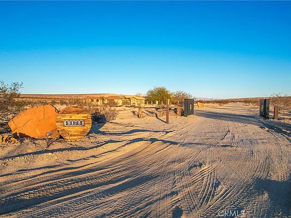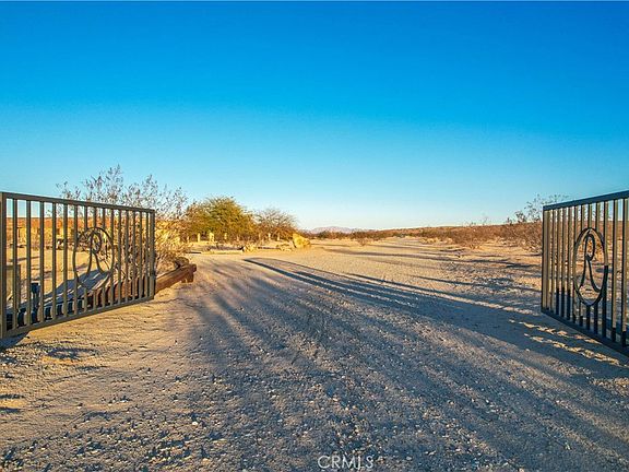 Welcome home to this spacious 3 bedroom, 3 bathroom home near the Joshua Tree/29 Palms town border. With few neighbors and situated on almost 10 acres of land you’ll experience the calm and quiet of the Mojave desert yet still be afforded the quick an easy access to shops, restaurants and grocery stores that are a short drive away. Upon arrive to the property you’re greeted with steel double gates, a long driveway and mature desert landscape that sets the tone for what awaits in this well maintained home. The spacious living room and dining room both feature beautiful wood flooring, vaulted ceilings, ample windows to let in the natural light, and ceiling fans. Adjacent to the living areas the kitchen and breakfast area are well complemented plenty of cabinet space, island with prep sink, tile floors, a walk in panty and access through the sliding glass doors to the huge enclosed and covered patio and second living are/den. The large primary suite also features vaulted ceilings, large windows that overlook the vast desert, wood floors, the walk in closet of your dreams that connects TWO separate private bathrooms! Each with a single sink vanity, plenty of cabinet space, toilet and a walk in shower with glass doors. The third bathroom boasts a single sink vanity and shower/bathtub combination. This home has so many unique and thoughtful features like the indoor laundry room with extra storage and utility sink and the finished mudroom with tile floors and access to the two car attached garage. There is also a 300 sqft bonus space with wall ac, sink, and half bath. Home has a backup generator. 3 storage sheds, 2 septic tanks, and RV parking; electric and water hookups. The back yard is sure to delight the entertainer in you with the covered and enclosed patio with built in island/bar with a sink, ceiling fans, evaporative cooler and lighting in addition to cover paver patio. With so much space and land the possibilities are endless for this property.