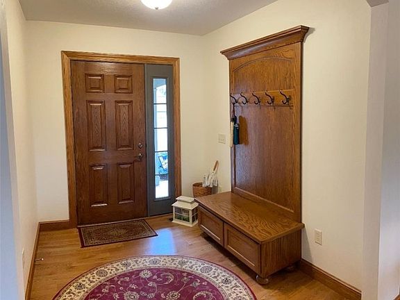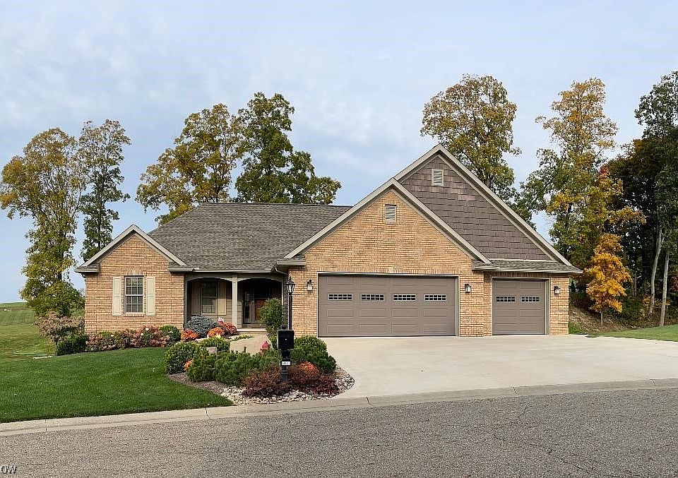 Ranch home built in 2016; upgrades include: 18 SEER heat pump, Trane high efficiency gas furnace, all 2x6 exterior walls, R21 insulation, insulated vinyl siding, lower level R23 insulation, radiant heat in lower level floor, whole house 22K generator, 8 ft garage doors, upgraded woodwork throughout with several pocket doors, stone front gas fireplace, 9 ft ceiling in great room, extended rear concrete patio over to lower level garden garage.