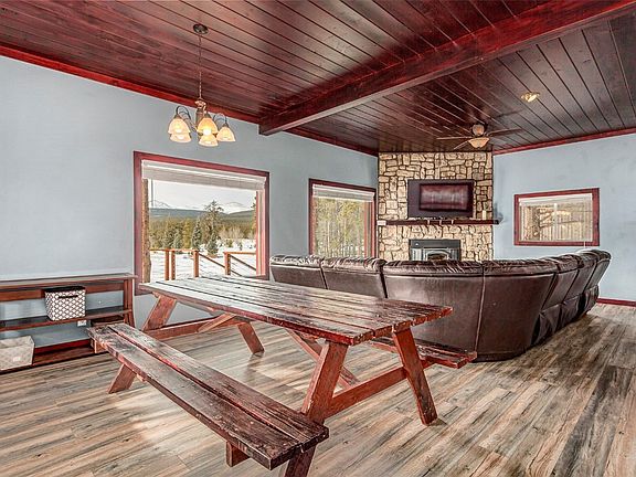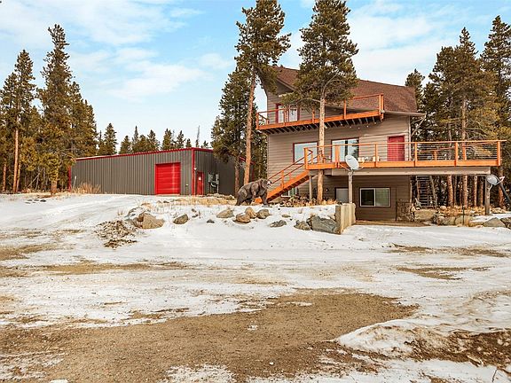 One of a kind property set on 9.83 acres with sweeping views of the Mosquito Range. Three levels of mountain living space, with a spacious one bedroom apartment on the lower level that can be locked off. 4 bedrooms and 3 bathrooms. Large deck affords stunning mountain views. Huge 40x60ft steel barn. Ideal for local business owner, toy shed...etc. Remodeled kitchen. Large wood burning fireplace insert on the main level. Flat access from HWY 9 and area surrounding the home and steel barn.