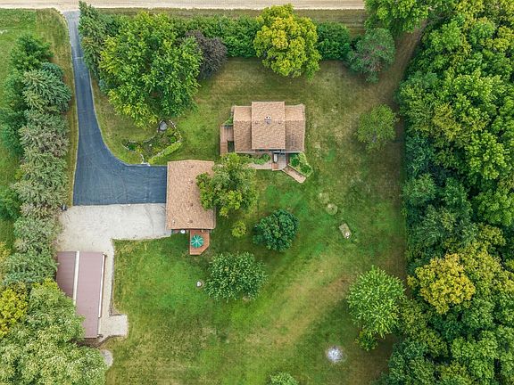A Frame style home out in the Country on over 1.25 acres surrounded by trees and farmland for privacy! Home has 3 bedrooms, 2 baths, living room with wood stove, barnwood tongue and groove on wall and ceiling along with a large kitchen/dining area, spiral staircase that leads up to the Upper level which is vaulted with a beamed ceiling, Primary bedroom suite with Primary bath, large family room, office space and a 10x10 deck. Some improvements on home are windows 2011, roof 2017, carpet 2021, flooring 2022. Outbuildings include 24x48 pole barn in which half is heated, insulted and A/C. Large detached garage that's heated, insulated, air conditioned, built in closets, and a door to the hobby room/Man cave into the 3rd stall. Additional storage sheds included.