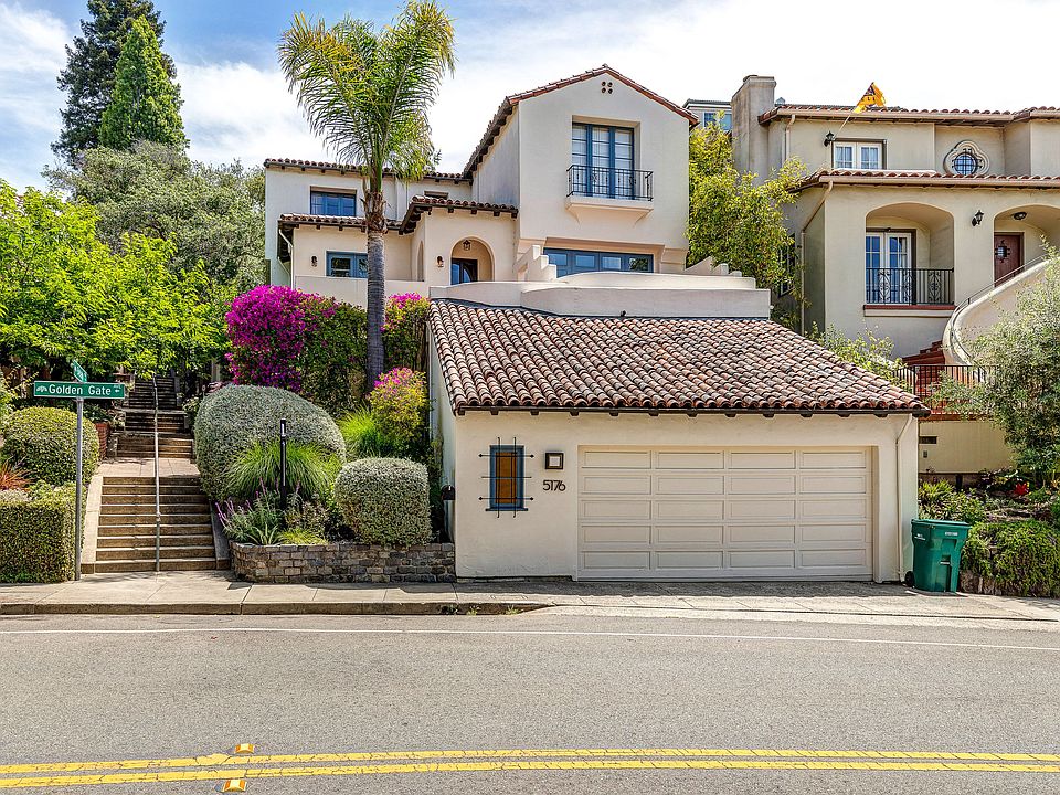 Elegant Move-In Ready Mediterranean style home with SF Views in Upper Rockridge! This Inviting Mark Becker architectural designed home has cathedral ceilings, arched doorways, multiple french doors, custom fireplaces, open dining area, and hardwood floors throughout; One bedroom and full bath on the main floor for a guest suite. The spacious living room and formal dining room lead to front patio that provide for outdoor dining and entertaining with breathtaking Views! The fully remodeled gourmet kitchen features quartz counters, a large island, gas stove and all new stainless steel appliances all fit for a foodie & opens to a family room, deck, and lush backyard garden. The upstairs features an impressive master suite w/ stunning views & a spacious master bath plus 2 additional bedrooms, and a large laundry room. The lowest level features an additional 5th exercise room, workshop, wine cellar, storage and a two car garage. Close to restaurants, BART, and Award winning schools.