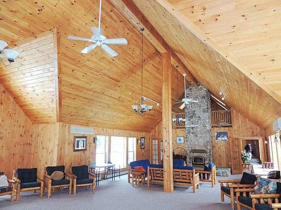 The possibilities are endless…whether you decide to use this incredible property as just your home, or office/business too, you will not be disappointed! The lodge is heated and cooled by a new geothermal system installed in 2016, and the main house features a completely remodeled eat-in kitchen with custom cabinetry and stainless appliances. The living room boasts solid oak floors and a stone wall with a wood stove. The main level master suite includes a walk-in closet, and huge custom bath with 2-person whirlpool tub and Italian tiled shower, fitted with solid cherry wood taken from the grounds. The upper level layout includes 2 additional bedrooms and a full bath. The main house connects to the lodge with a separate private entrance. The professionally designed lodge was built in 2001 and features a bright 45'x30' great room with full tongue and groove walls, and soaring cathedral ceiling and a floor to ceiling wood burning fireplace and kitchen. There is a bonus room off the great room with its own entry and deck. Large catering prep kitchen. 2 half-baths, plus another full bath and laundry. Upstairs includes a private raised office with a bird's eye view of the grounds, and a cozy -- yet large loft that overlooks the great room. All of this and more is located on 18.87 acres, with a 2000+ Sq. Ft. garden fenced in with fence posts split by hand from fallen locust trees on the property.