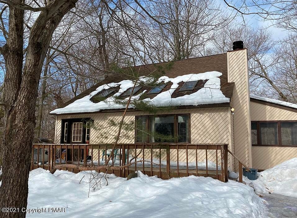 Nice and bright contemporary in amenity filled Pocono Farms. 1st floor master bedroom with private deck and full bath, living room with fireplace and skylights, cathedral ceilings, Kitchen with breakfast bar, 3 upstairs bedrooms and bath. Great for vacation, rental or primary residence!