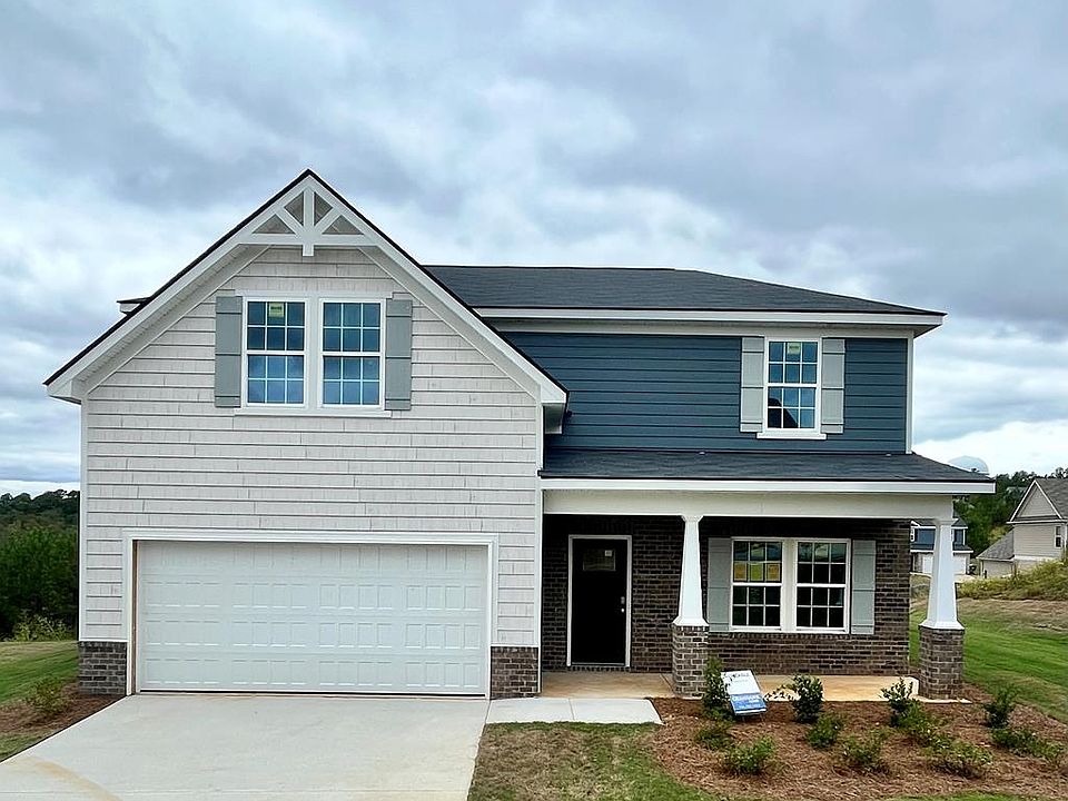Presenting the Brentwood Craftsman floor plan to Lexington Hills subdivision. Entering in through the foyer and be greeted by a carpeted staircase and formal dining room. Through the dining room you will find a kitchen complete with stainless kitchen appliances to include dishwasher, oven and mounted microwave. The breakfast area is open to the kitchen and the great room. Also on the main level is a full bath and a bedroom perfect for guests. On the 2nd level you will find an impressive primary bedroom with a walk in closet and dual vanity primary bathroom. Also, upstairs is 3 additional bedrooms and another full bathroom and laundry room. Outside you will find a covered front porch, an attached 2 car garage and a patio area in the back. Make this house your home today!