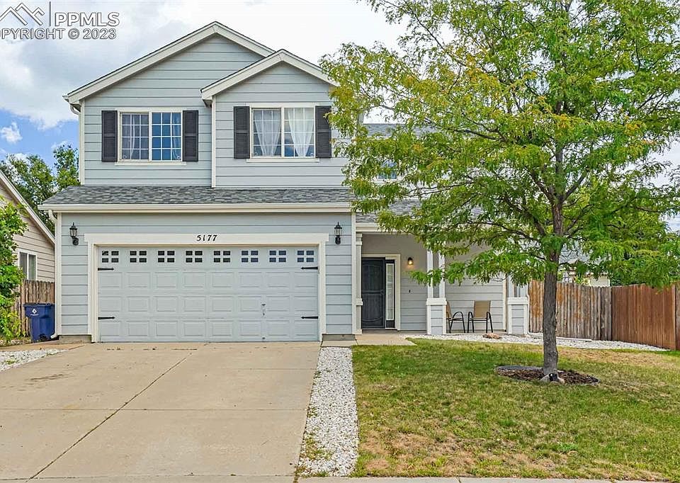 This beautiful 2-story home is located on a quiet street while being just minutes from great shops, and restaurants. You're also perfectly situated on a small cul-de-sac with a large flat backyard and open space behind you creating plenty of room a privacy. From the entrance, you're greeted with an open floor plan, high ceilings, and large windows letting in plenty of natural light. This popular layout features a large living that flows right into the dining area and kitchen. The dining area hosts a large sliding glass door that welcomes you onto the oversized back patio making this a great home for entertaining friends and family. The upper level hosts a large primary suite with a spacious bath that includes a double vanity, garden tub, and adjoining walk-in closet. Two additional bedrooms with views of Pikes Peak and the 3rd bathroom complete the upper level of this very functional layout. The location is ideal for anyone commuting to Peterson AFB, ShrieverAFB, or Ft. Carson. A large 2-car garage, Central Air, updated fixtures, a newer roof (2020), and an 8000+ sf lot are just a few of the other features that this great home has to offer!
