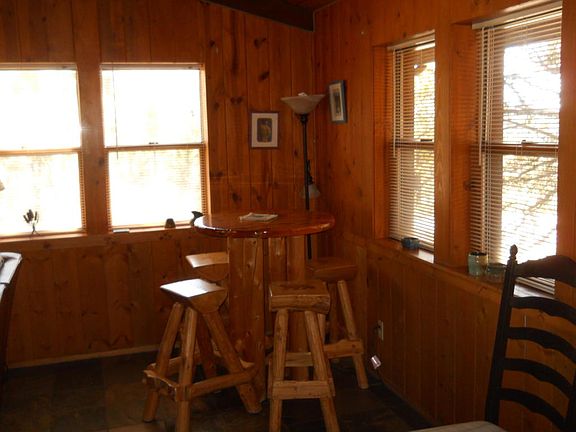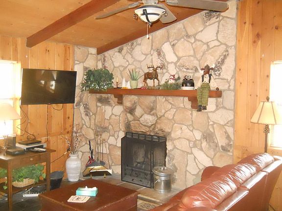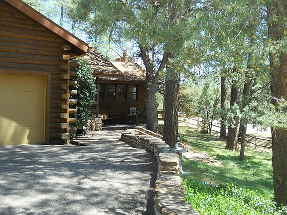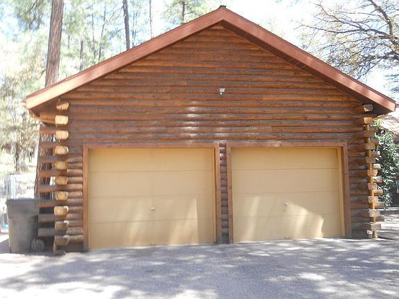 A real log cabin in the mountains!Beautiful corner lot. Interior is nicely done with slate floors and a continuation of the mountain cabin decor.Wood stove in kitchen. Spacious two car garage with tall storage.