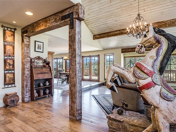This private and serene estate surpasses your wish list for an idyllic mountain property. Complete remodel in 2006 of the entire main home with every detail exquisitely executed with timeless design details. Soak in mountain valley views including snow capped Mount Evans. Wander over 11+ acres of remarkable land with native meadow & mature trees. Hike/XC ski/ride through your private gate into adjoining mountain parks. For your horses there is lush grass to graze, a four stall barn,legal water, perimeter fencing & cross-fencing plus an outdoor arena. For your toys & hobbies you will find a 830 SF heated garage/workshop with concrete floors, water & electricity.An enchanting 1 bdrm+loft, 2 bath cabin nestled in an aspen grove, offers additional options for living space. Serene & spacious yet convenient access to every amenity & Colorado attraction-7 min to schools;15 min to shopping;1 hr to DIA; 45 min to Denver Perf Arts Complex;45 min to Coors Field;1 hr to world class skiing.