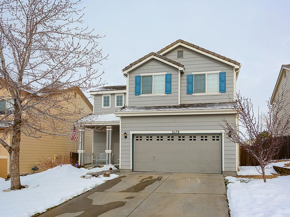 Check out this meticulously-maintained and updated two-story home in Saddle Rock Ridge. Upgrades include newer paint, custom built-ins, custom shelving, brand-new Aquaguard flooring, as well as a stunning lawn and flower gardens. This popular floor plan includes an open concept design downstairs with loft space and three bedrooms plus two bathrooms upstairs. The private backyard and patio are perfect for entertaining and enjoying Colorado's great weather! This wonderful family home is also close to parks and trails, just minutes from shopping, dining, and entertainment, and is in the sought-after Cherry Creek School District. Easy commute to Tech Center, Buckley, Denver, and DIA. Don't wait, this one will go quickly!
