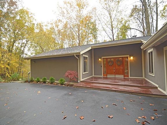 Wooded & Secluded custom built ranch on 10+ acres. Hardwood flrs, lg eat in kitchen & finished lower level w/additional office & sauna. Wrap around deck w/forest views. Newer HVAC, roof, rebuilt wrap around deck, exterior painting & city water line.