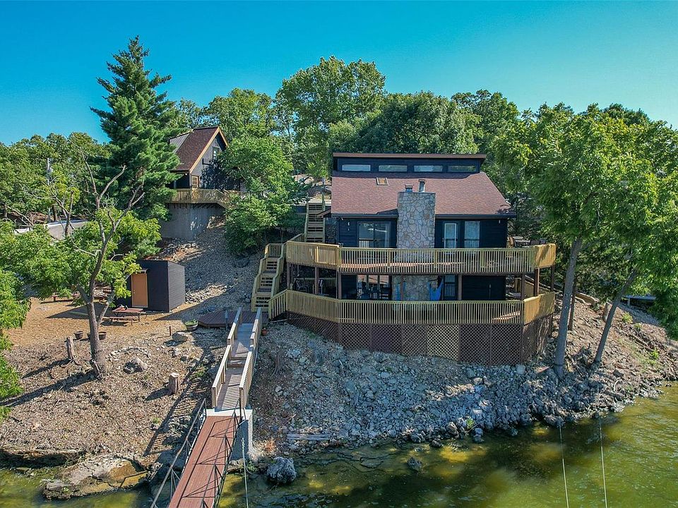 LOCATION...LOCATION...LOCATION...Are you tired of going down multiple roads to a house on a small lot w/steep drive, limited parking & small dock? Look no further! This property has an excellent location, with plenty of parking for friends and family! Plenty of space for family and friends, whether in kitchen, dining room or downstairs in the 2nd living/recreation space. Relax on TWO levels of wrap around deck which features new stairs & railing! Or walk down to the dock featuring (2)swim docks, (1) with dive platform & (1) with slide both have wet step ladders. (2)boat slips - 16x40(could be 53' w/walkway removed) & 12x32, 2 relaxing area with table & chair & (1) sectional couch & fire pit! No wake & limited wake cove makes your time more enjoyable plus dock also has TWO dead man cables to help regulate any rock of your dock. Call today to view this 2BR, with a loft that has been used as the 3rd bedroom, 2 1/2 bath home, close to so many amenities here at the Lake of the Ozarks!