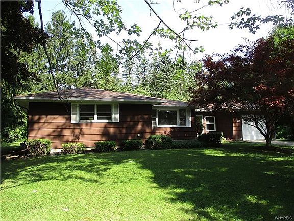 One owner ranch home at the end of the street with 172' of frontage and private fully treed rear yard with quaint stone patio plus storage shed! Living room with foyer entrance and laminate flooring. Kitchen with formica cabinets and counters and separate dining area. Paneled den with wood fireplace has access to basement, garage, rear yard patio and front yard. All three bedrooms with hardwood floors, Attached 1 car garage. Entire basement has been cleaned out and walls & floor painted!
