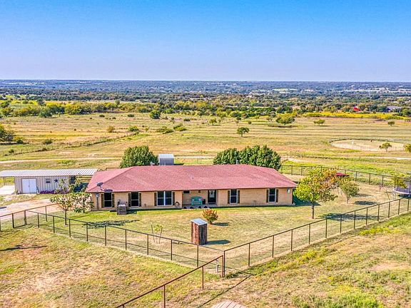 Texas Country Living! Conveniently located a short drive from the square in Weatherford, this charming ranch style home sits on 12.4 acres! The home has been beautifully updated, with high end appliances, wood tile floors, fresh paint, carpeting, and much more. 40x40 shop, can easily accommodate horse stalls or be used for a equipment storage. Professional quality dog kennel and runs, for your furry family members. Includes, additional covered storage and a 2 stall shedrow horse barn. Pastures fenced and cross fenced, pipe horse pastures in the front of the property. Two entrances make trailer parking a breeze. If this wasn't enough, the views from the back of the property are absolutely breathtaking!