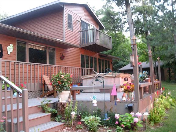 Private and Lovely Home on Big Turtle Lake! Nestled amongst large pines, mature birch and maple, this property is unique and desirable. The level lake lot, sand shoreline and west facing views are the nicest on Turtle Lake. With over 4 acres and 350ft of shoreline this beautiful property is hard to beat. The 3 bedroom, 3 bath home boosts of large lakeside windows, full lakeside decks, and is decorated with a North Woods Flare. The large gourmet kitchen has plenty of room for cooking and entertaining. All of the appliances are new including the furnace. The cedar home & garages have been recently shingled & stained. the blacktop driveway to the 2 oversized garages and home keep the area clean and tidy. If your interested in a warm and spacious home with the perfect lake lot on Turtle Lake, you have found it!
