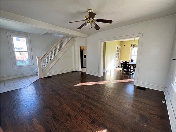 Terrific Two Story! A blend of old world charm & character blended w/ updated laminate flooring as you enter the spacious living room. A large formal dining room w/ built in storage and a light & bright kitchen w/ a side-by-side door refrigerator & newer dishwasher round out the main level. Up to the second level where we find bedrooms 1, 2, 3 and the full bathroom w/ in room storage cabinet & bidet attachment. There's also a third floor with great space that could be finished for another bedroom, living space, or used as storage. The basement houses the laundry room, has tons of storage along w/ a brand new water heater & 200 amp electric panel. Outside you have a covered front porch & off street parking in back. Come see for yourself!