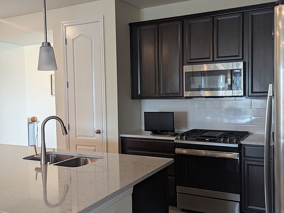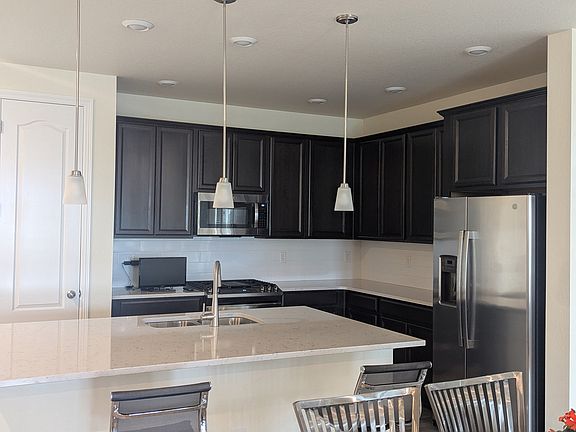 LENNAR SINGLE FAMILY HOME BUILT in 2020 WITH MOUNTAIN VIEWS: 518 176th Avenue; Broomfield, CO 80023 (Close to I-25 & Hwy 7) No Pets; No Smoking Stunning Ranch Style with 9' Ceilings (Main Level) 3 Bedroom, 2 Bath & Study 2 Car Garage (Mudroom Area) Approx. 1,830 SF Finished & 1,634 SF Unfinished = 3,464 SF Covered Front Porch & Oversized Back Deck w. mountain view (Approx. 14' X 16') Professional Interior Design Upgrades, Solar Energy System, WiFi CERTIFIED Open Floor Plan in Great Room & Kitchen 9' Ceiling Engineered Vinyl Plank (EVP) flooring in Great Room, Kitchen Study & Halls Spacious Great Room Gas Fireplace, Ceiling Fan & Access to Covered Deck with Mountain Views Cook's Kitchen with quartz countertops, large center island with breakfast bar, 42" H slate cabinets, tile back splash, pantry closet and stainless steel GE appliances. ENERGY STAR Refrigerator & Dishwasher, Gas Range with Griddle, Microwave, Garbage Disposal, Trash/Recycle Pull-Out Cabinet Master Bedroom Suite is large and offers great natural lighting with mountain views, large walk-in-closet and coffered ceiling with ceiling fan. Deluxe Bath with dual vanities, quartz countertop, oversized shower with seat, wall tiles, ceramic floor, linen closet and private water closet. Two Additional Bedrooms & Full Hall Bath provide wonderful living options. All three bedrooms are carpeted. Study is open and has views to foyer, front porch and community park Main Floor Laundry with Tile Floor & Cabinet INCLUDED: * Solar Smart & Environmentally Conscious Living (Symbol of State of the Art Home) * Window Coverings on main floor (2" Faux Wood Blinds & Vertical Blinds on Patio Door) * Overhead Lights throughout main floor - including Bedrooms & Study * Landscaping in front and rear yards with irrigation system (water saver) * Fenced yard No smoking and no pets allowed